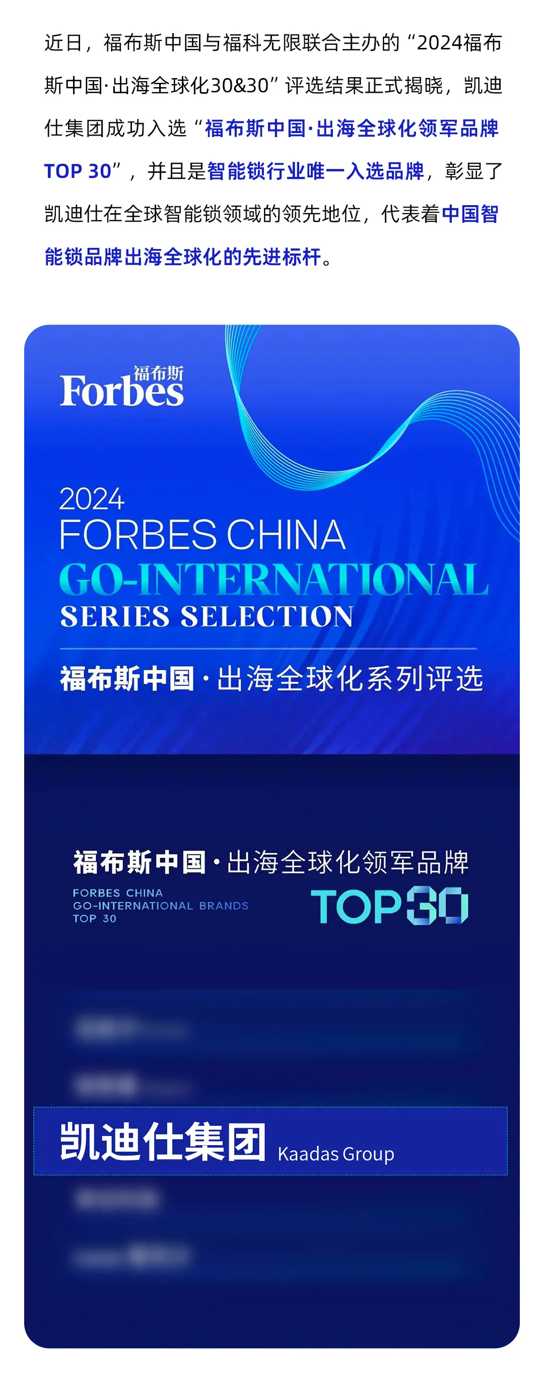 智能锁全球典范!ca88官方唯一网站荣膺2024福布斯中国·出海全球化领军品牌TOP30