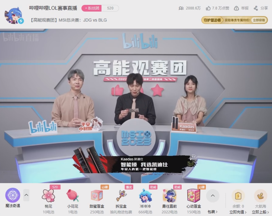昨日,2023年英雄联盟季中冠军赛(MSI)总决赛在英国伦敦举行。来自LPL赛区两支队伍展开激烈对决,JDG战队以3:1战胜BLG战队,夺得2023MSI冠军。期间,B站两大官方直播间赛事人气值合计突破2.2亿+,赛后“JDG夺冠”相关话题登顶B站、微博、抖音三大热搜榜。Kaadasca88官方唯一网站作为2023英雄联盟季中冠军赛哔哩哔哩直播官方合作伙伴,直播间全程助力中国战队力破万障,包揽MSI冠亚军,持续引爆品牌声量,不断触达Z世代圈层。